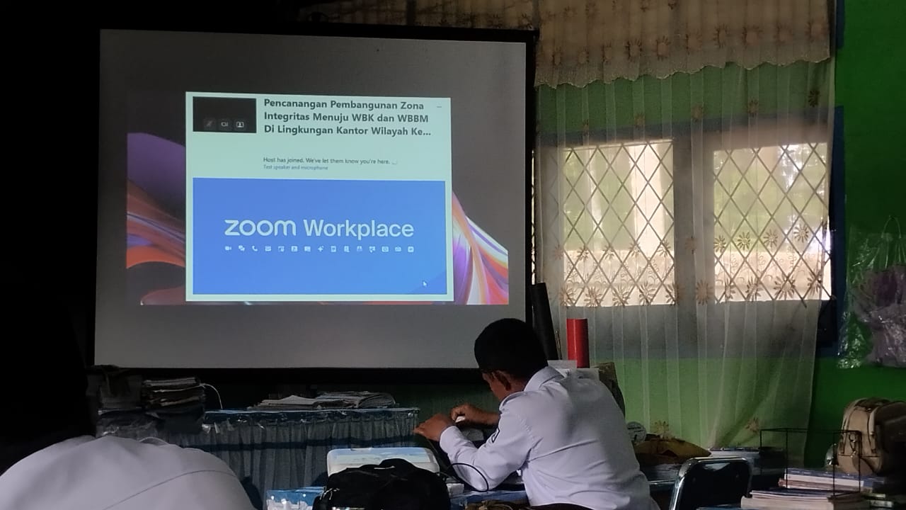 Kerinci [09/12]– MTsN 5 Kerinci menunjukkan komitmennya dalam mewujudkan Zona Integritas menuju Wilayah Bebas dari Korupsi (WBK) dan Wilayah Birokrasi Bersih dan Melayani (WBBM). Hal ini dibuktikan dengan 1 partisipasi aktif madrasah dalam kegiatan zoom meeting Pencanangan Zona Integritas yang diselenggarakan oleh Kantor Wilayah Kementerian Agama Provinsi Jambi. Â