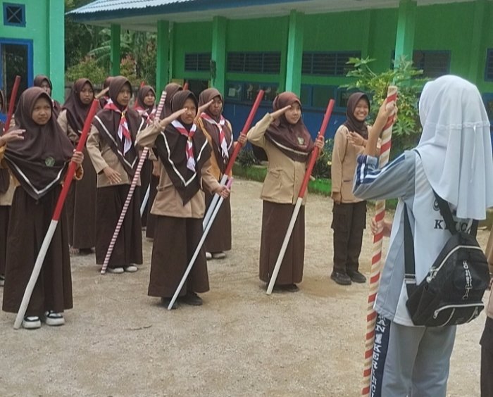 KERINCI – Dalam rangka menyambut perhelatan akbar kepramukaan, Jambore Ranting Wilayah IV, perwakilan siswa dan siswi MTsN 5 Kerinci kini tengah memacu persiapan mereka dengan latihan intensif Peraturan Baris Berbaris (PBB). Kali ini menggunakan tongkat. Latihan ini bertujuan untuk memastikan kontingen madrasah tersebut tampil prima, disiplin, dan terampil dalam setiap sesi kegiatan Jambore.