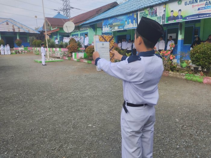 Kerinci [20/10/2025] , Madrasah Tsanawiyah (MTs) Negeri 5 Kerinci kembali melaksanakan kegiatan rutin upacara bendera mingguan di halaman madrasah. Upacara kali ini berlangsung dengan khidmat dan tertib, diikuti oleh seluruh siswa, guru, dan staf tata usaha.