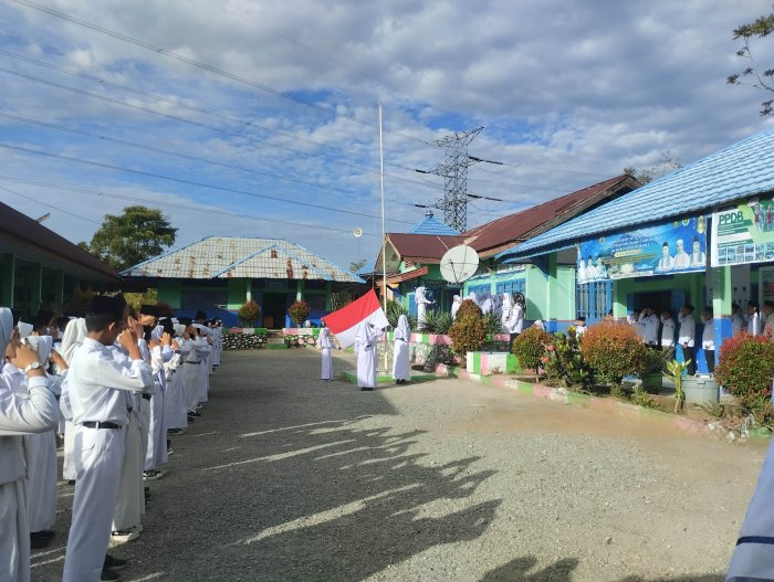 Kerinci – Madrasah Tsanawiyah (MTs) Negeri 5 Kerinci kembali melaksanakan upacara bendera hari Senin dengan khidmat di lapangan madrasah, Senin (27/10/2025). Pelaksanaan upacara kali ini menarik perhatian karena mengangkat tema yang sangat relevan dan penting yakni penanggulangan dan pencegahan aksi bullying di lingkungan Madrasah