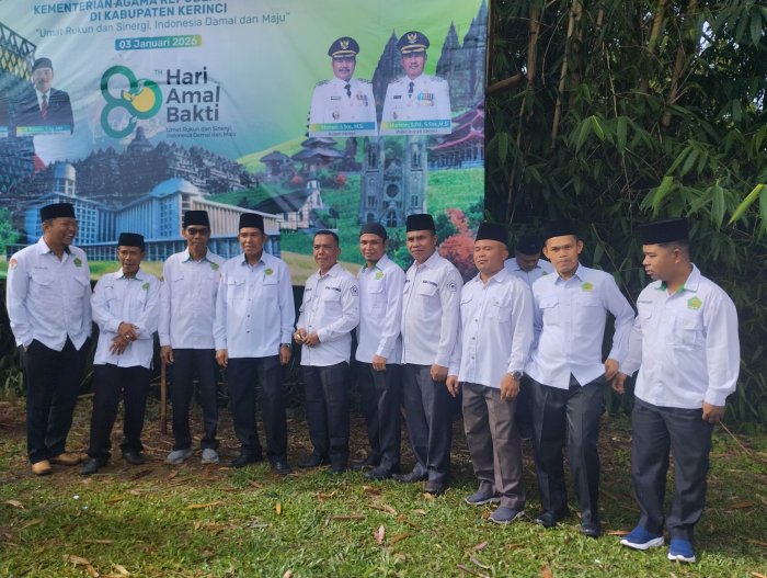 KERINCI – Keluarga besar Madrasah Tsanawiyah Negeri (MTsN) 5 Kerinci menunjukkan partisipasi aktif dalam upacara peringatan Hari Amal Bakti (HAB) ke-80 Kementerian Agama Republik Indonesia. Upacara yang berlangsung khidmat tersebut dipusatkan di Lapangan Daka Sebukar, Kabupaten Kerinci, pada Sabtu (3/1/2026), dengan dihadiri oleh ribuan ASN dari Kementrian Agama