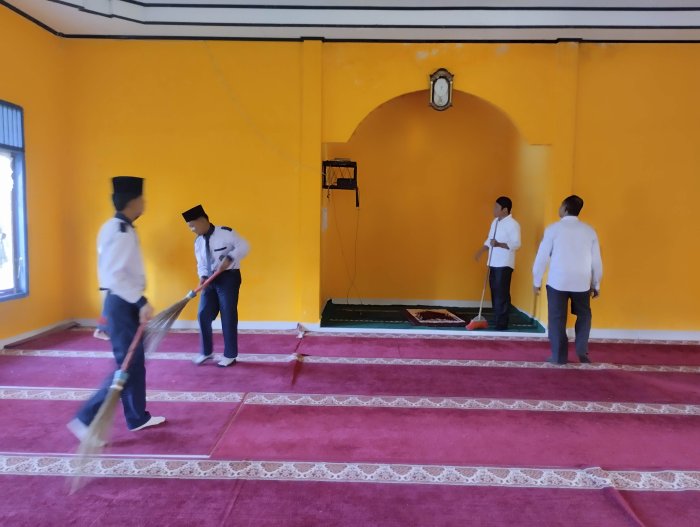 Baru-baru ini, sejumlah siswa yang terkena sanksi disiplin diarahkan untuk melakukan aksi gotong royong membersihkan Mushola madrasah. Alih-alih menjalani hukuman yang bersifat kaku, para siswa ini justru diajak untuk berkontribusi nyata dalam menjaga kebersihan rumah ibadah. Kegiatan ini dilakukan di bawah pengawasan ketat guru bimbingan konseling, Waka kesiswaan dan Pembina keagamaan.