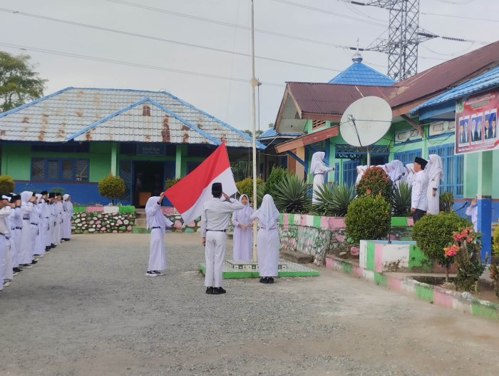 KERINCI – Suasana khidmat menyelimuti lapangan utama Madrasah Tsanawiyah Negeri (MTsN) 5 Kerinci pada Senin pagi. Seluruh siswa, guru, dan staf pegawai berkumpul dengan seragam lengkap untuk melaksanakan upacara bendera rutin. Udara pagi yang sejuk di Kabupaten Kerinci menambah kekhusyukan para peserta saat sang merah putih mulai dikibarkan oleh petugas upacara.