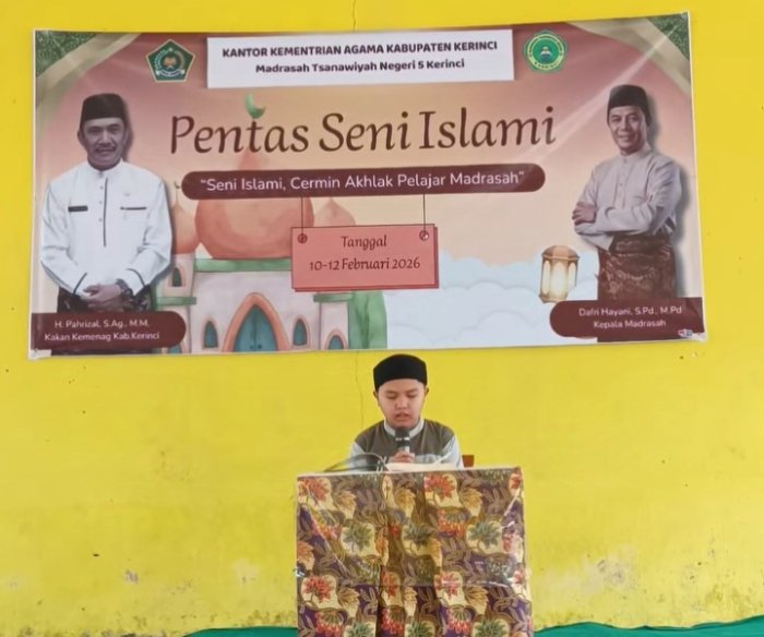Kerinci – Suasana religius nan meriah menyelimuti MTsN 5 Kerinci pada pelaksanaan hari kedua ajang Pentas Seni (PENSI) ke-1 tahun 2026. Fokus utama kegiatan hari ini tertuju pada dua cabang lomba yang sangat dinantikan, yakni Lomba Solo Song Lagu Religi dan Lomba Tartil Al-Qur'an. Sejak pagi, ratusan siswa dan tamu undangan telah memadati area panggung utama dan aula madrasah untuk menyaksikan bakat-bakat muda unjuk gigi.