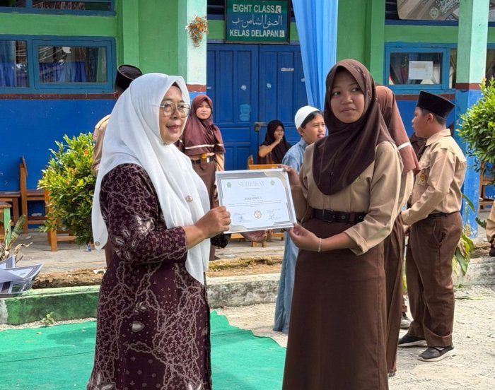 Kepala Madrasah MTsN 5 Kerinci, Bapak Dafri Hayani, S.Pd, M.Pd secara resmi membuka prosesi penyerahan hadiah dengan memberikan sambutan yang penuh apresiasi. Beliau menyampaikan rasa bangga yang tak terhingga kepada seluruh panitia dan keluarga besar madrasah yang telah bekerja keras dan bersinergi dalam mensukseskan acara perdana ini.