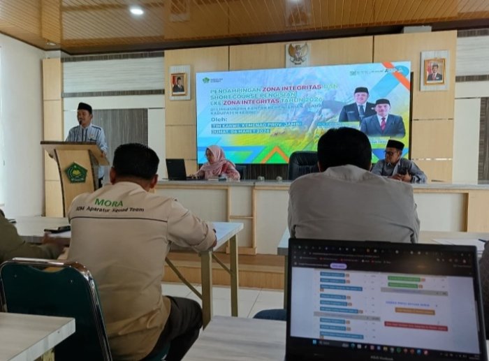 Kegiatan strategis ini dilaksanakan di Aula Kantor Kementerian Agama Kabupaten Kerinci dengan menghadirkan tim ahli dari Kantor Wilayah Kementrian Agama Provinsi Jambi Ibu Suci, Fokus utama dari kursus singkat ini adalah membedah secara mendalam setiap indikator yang ada dalam LKE, guna memastikan proses administrasi dan implementasi ZI di tingkat madrasah berjalan sesuai dengan regulasi terbaru.