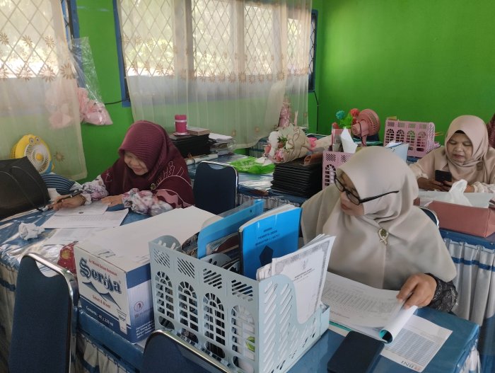 KERINCI – Suasana di ruang guru Madrasah Tsanawiyah Negeri (MTsN) 5 Kerinci tampak berbeda dari biasanya. Memasuki pertengahan semester genap tahun 2026 ini, para wali kelas terlihat sangat sibuk dengan tumpukan buku rapor cokelat di meja mereka. Alih-alih hanya menatap layar komputer, para guru ini justru berjibaku dengan pena dan penggaris untuk mengisi nilai hasil Ujian Tengah Semester (UTS) para siswa secara manual.