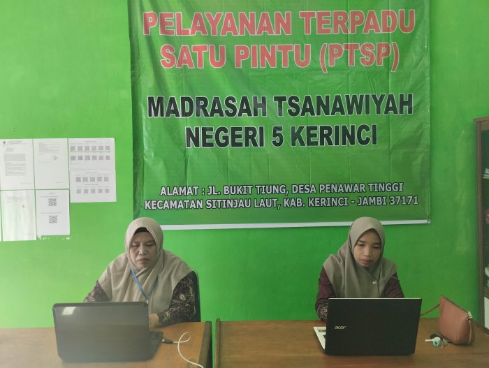 "Kami di bagian Tata Usaha memastikan bahwa sistem administrasi di PTSP berjalan rapi dan sesuai koridor hukum. Kecepatan dan keramahan adalah prioritas kami, karena PTSP adalah wajah terdepan madrasah dalam melayani masyarakat. Kami siap mendukung penuh terwujudnya Zona Integritas di lingkungan MTsN 5 Kerinci," ujar Ibu Marlida.