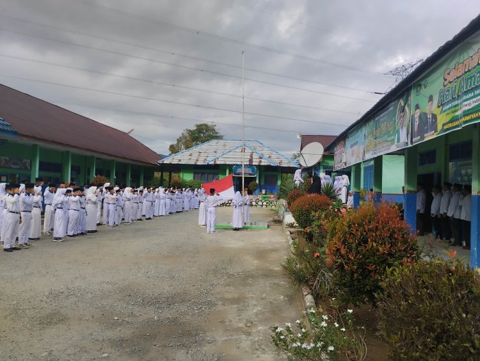 KERINCI (13 April 2026) – MTsN 5 Kerinci kembali melaksanakan rutinitas upacara bendera hari Senin dengan penuh kedisiplinan. Bertempat di lapangan utama madrasah, upacara kali ini diikuti oleh seluruh siswa, guru, dan staf kependidikan dengan nuansa yang tertib dan khidmat.