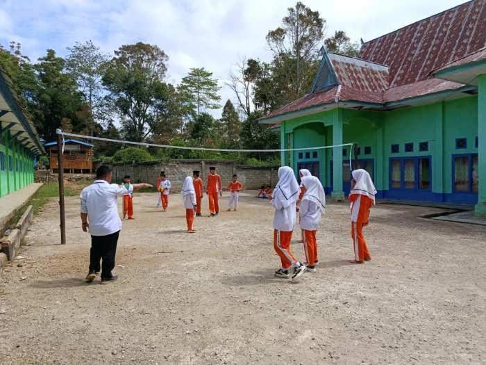 KERINCI– Lapangan olahraga MTsN 5 Kerinci tampak meriah dengan aksi siswa dalam praktik mata pelajaran Pendidikan Jasmani, Olahraga, dan Kesehatan (PJOK). Kali ini, materi yang diberikan berfokus pada teknik dasar permainan bola voli, sebuah cabang olahraga yang sangat diminati oleh siswa.