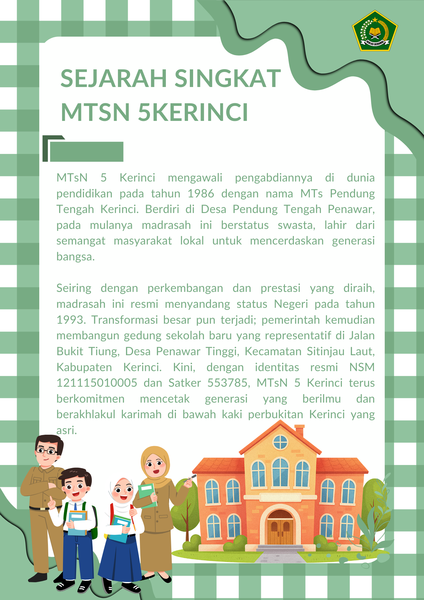 Selamat Datang di Website Resmi MTSN 5 Kerinci # Selamat datang di website resmi MTs N 5 Kerinci || Jalan Bukit Tiung, Desa Penawar Tinggi, Kec. Sitinjau Laut, Kab. Kerinci, Jambi, 37171 ||