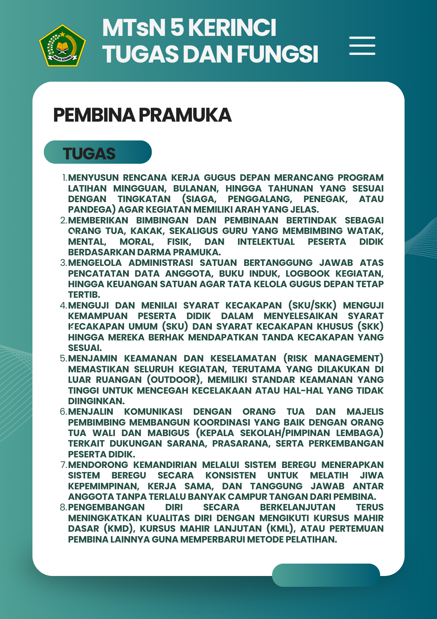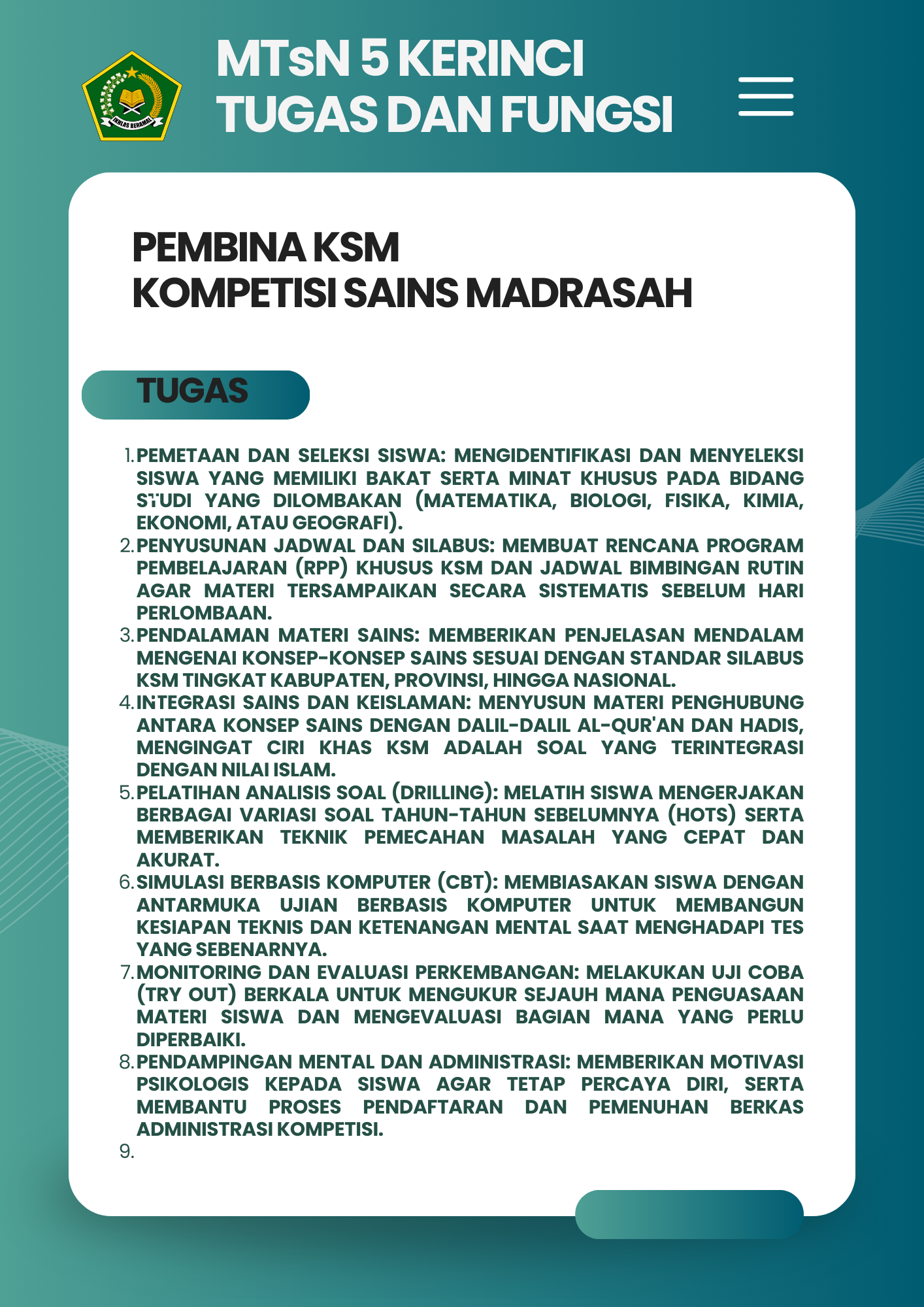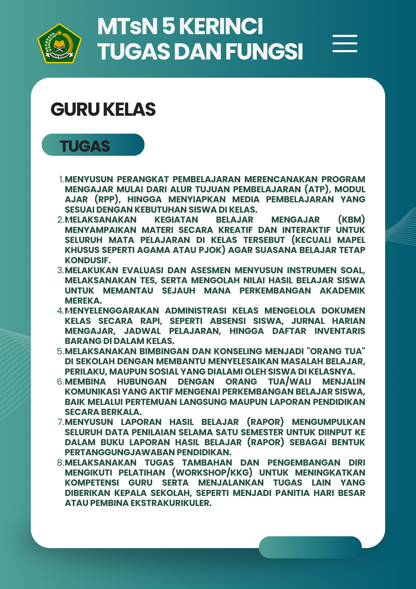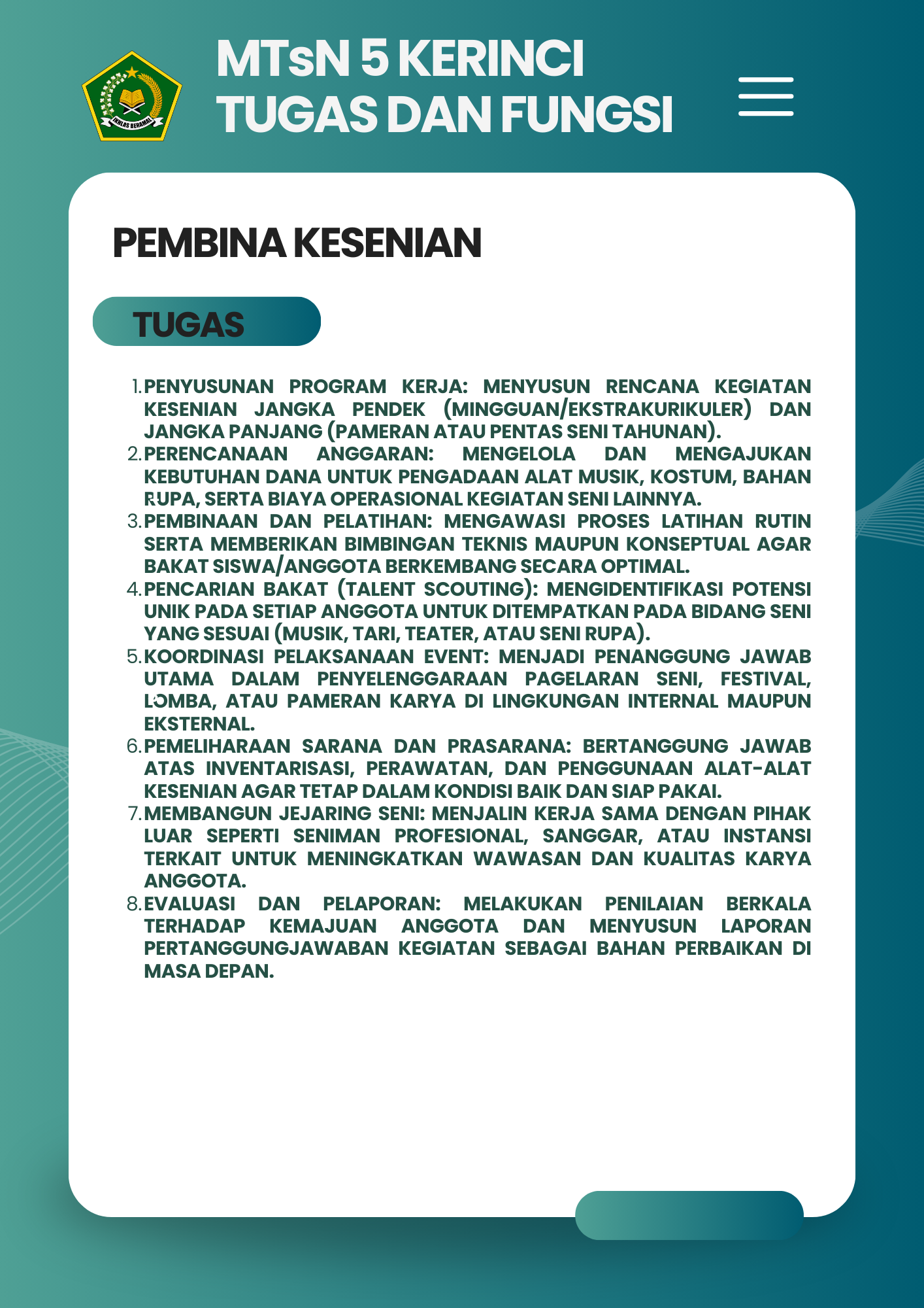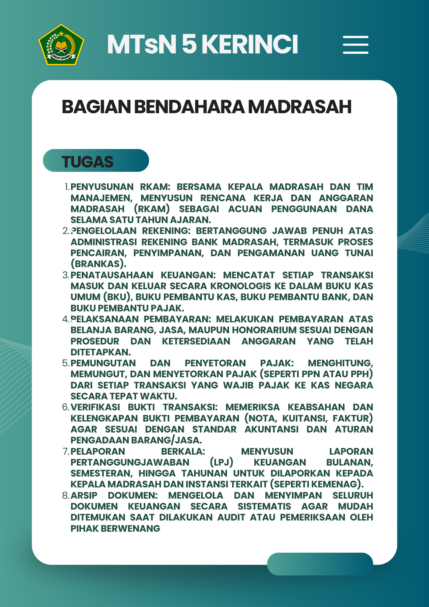 Selamat Datang di Website Resmi MTSN 5 Kerinci # Selamat datang di website resmi MTs N 5 Kerinci || Jalan Bukit Tiung, Desa Penawar Tinggi, Kec. Sitinjau Laut, Kab. Kerinci, Jambi, 37171 ||