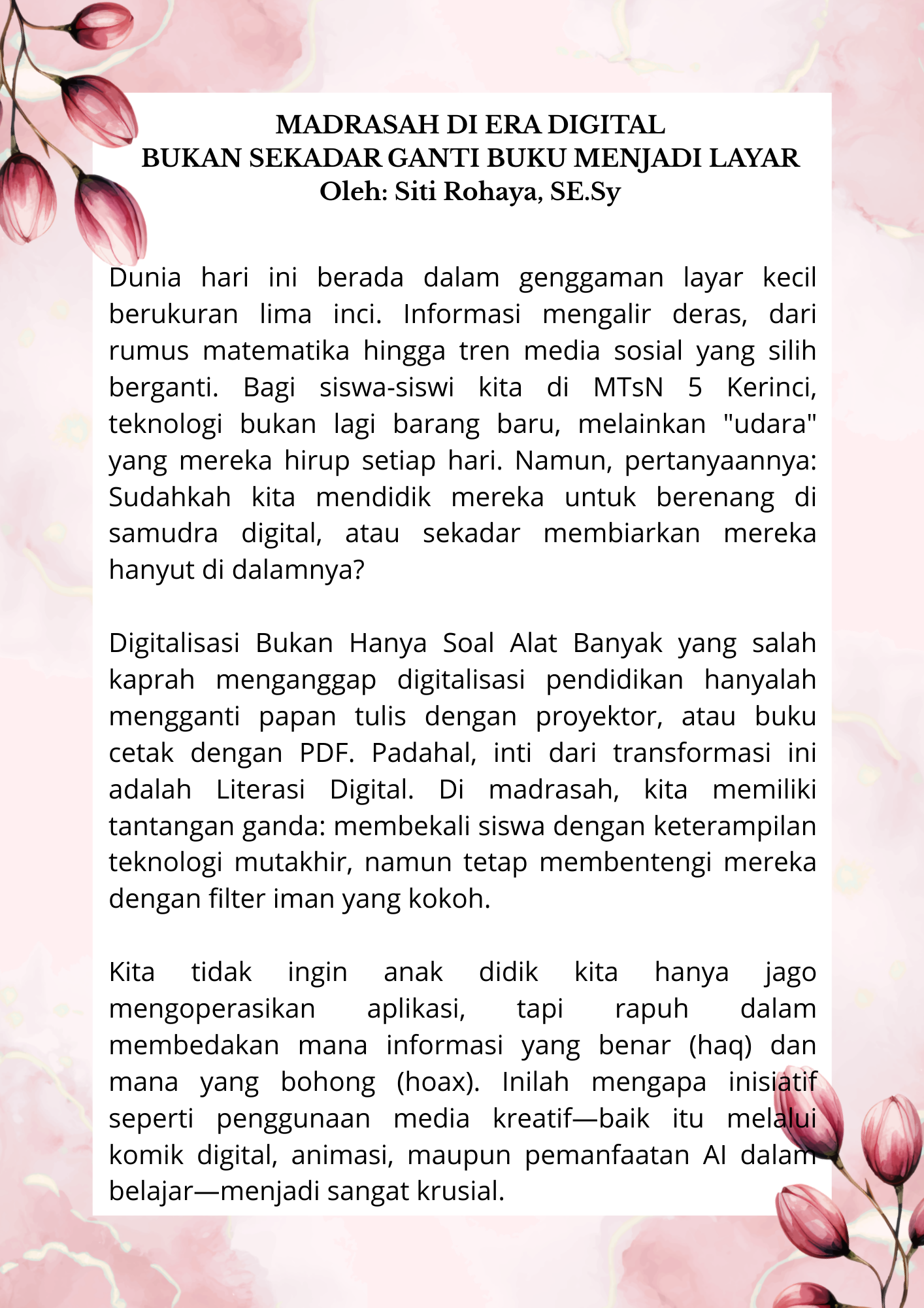 Selamat Datang di Website Resmi MTSN 5 Kerinci # Selamat datang di website resmi MTs N 5 Kerinci || Jalan Bukit Tiung, Desa Penawar Tinggi, Kec. Sitinjau Laut, Kab. Kerinci, Jambi, 37171 ||